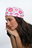Cofia rosa con estampado de labios.