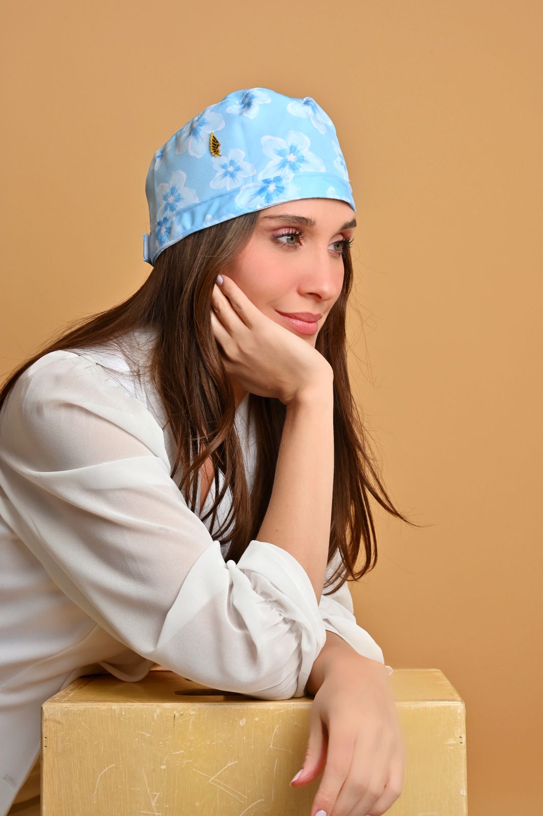 Cofia celeste con flores grandes azules.⚠ Producto sujeto a disponibilidad. Si no hay stock, se confecciona en un plazo de 15 a 20 días hábiles.